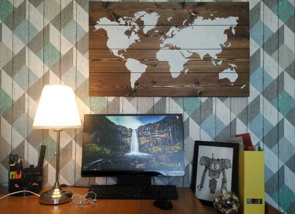 - Для такого предмета декора понадобится ксерокопия карты мира и основа из дощечек.