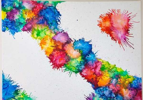- С таким творческим занятием справиться даже ребенок. Красочные пятна можно наносить хаотично, или продумать концептуальное расположение цветов.