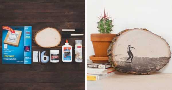 - Использовать в качестве декора для дома можно и кусочек любого дерева. Наклеив на спил вырезанную из бумаги фигуру человека или другую понравившуюся картинку, вы превратите обычный кусок дерева в стильное, авторское украшение интерьера.