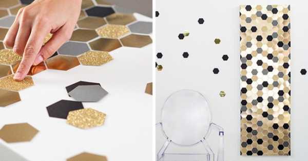 - Для этого нужно нарезать остатки обоев или клеящейся пленки на кусочки в виде шестиугольников.