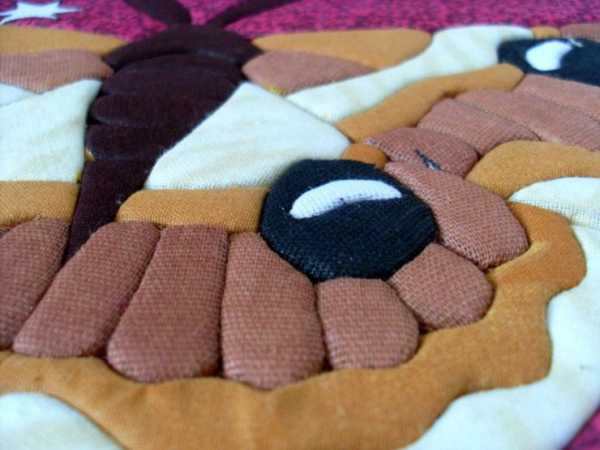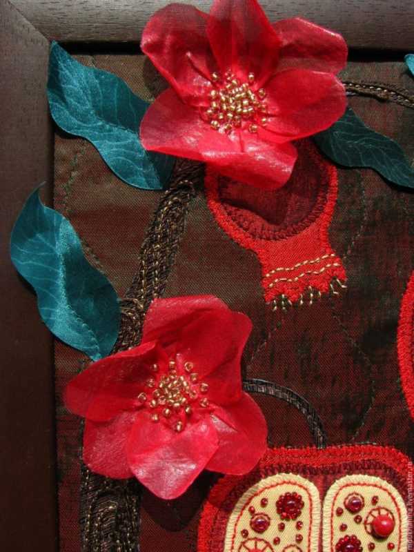 - Оригинальную картину можно выполнить из ткани. Такое занятие подойдет тем, кто любит шить.