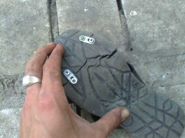 Мужик саморезами скрепил свою подошву.