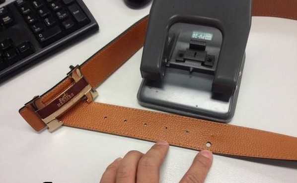Дырка на ремне криво сделанная степлером.
