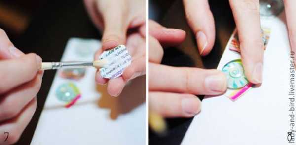 7. Итак, чтобы магнит не просвечивал, создадим еще один слой из бумаги. Для этого намажем оборот камушка клеем ПВА.