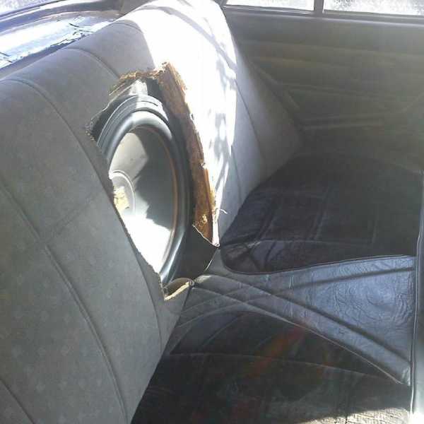 Саббуфер врезан в сиденье автомобиля.