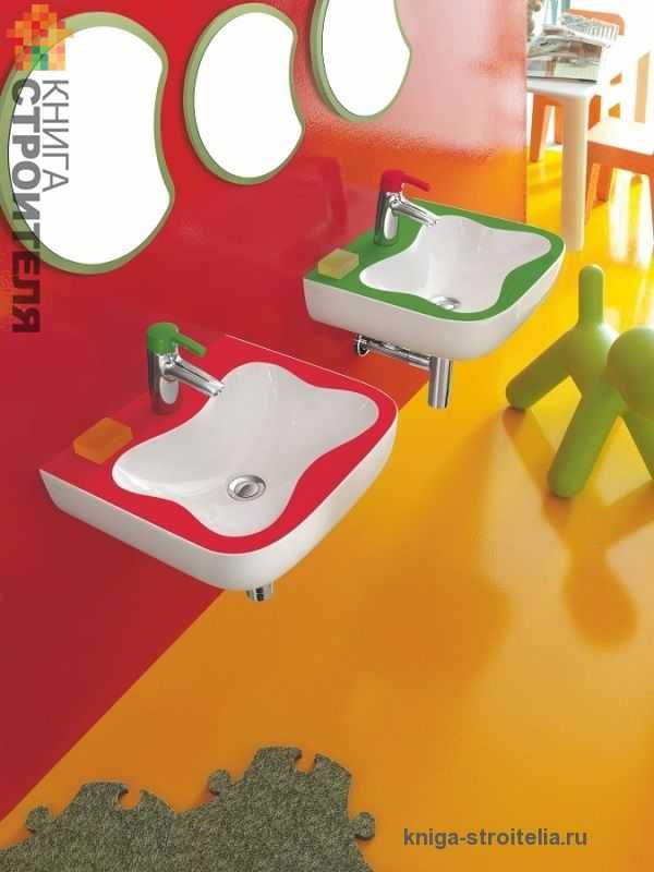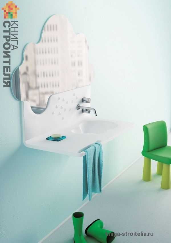 Если дети имеют разный рост, необязательно устанавливать две раковины на разной высоте. Достаточно для малыша поставить скамеечку. Также можно повесить каждому свое настенное зеркало на разной высоте, чтобы удобно было и старшему, и младшему.