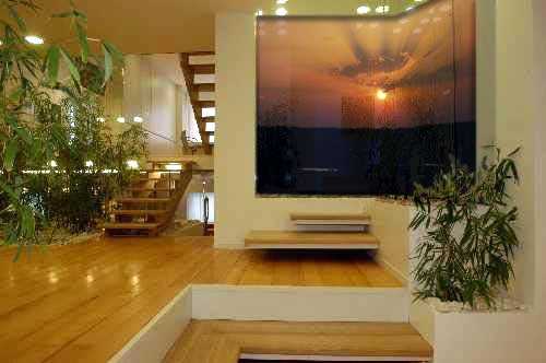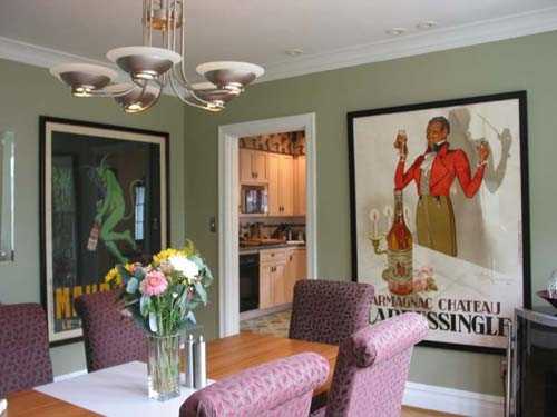 В помещениях большого размера, стены которого больше ничем не декорированы, лучше повесить изображение, занимающее значительную часть поверхности или несколько небольших постеров.