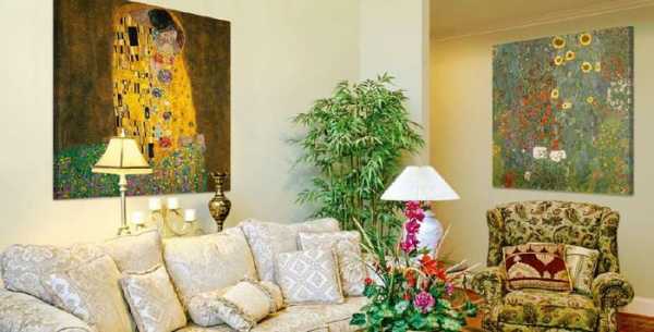 - Все должно быть в меру. Простой пример — на фотографиях ниже: в разных комнатах размещены репринты картин уже упомянутого Густава Климта, который очень популярен в последнее время.