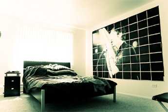 - В спальне лучше повесить умиротворяющее изображение сдержанных цветов. В гостиной, наоборот, уместно что-то яркое и динамичное, но будет лучше, если вы подумаете о гостях: не будет ли постер задевать кого-либо, можно ли на него смотреть детям (если у вас нет своих)?