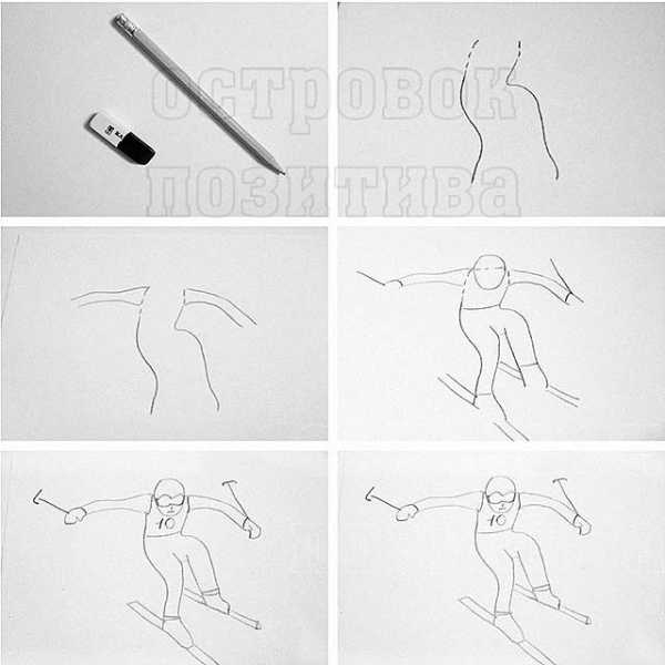Одним из важных и сложных моментов в изображении людей, это зафиксировать фигуру в движении. Особенно это касается темы спорта и спортивных соревнований, где вся суть изображения раскрывается именно в передаче движения. Давайте сегодня попробуем нарисовать горнолыжника, чтобы понять, что это такое.