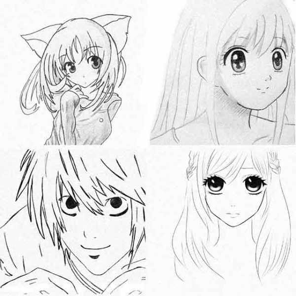 Это могут быть портреты аниме персонажей, композиции на тему животного мира или что-то другое. В них имеются простые и сложные элементы. Что-то будет получаться с первого раза, а над чем-то придётся попотеть. Столкнувшись с трудностями, не отступай. Внимательно прочти описание, сопровождающее рисунок и начинай!