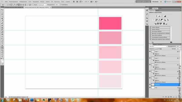 Дальше делаем горизонтальные направляющие, которые поделят правую часть на нужное количество цветов. У меня это пять, так что горизонтальные направляющие у меня на отметках: