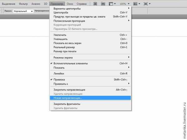 Выбираем меню «Просмотр — Новая направляющая». Указываем вертикальную направляющую на расстоянии 768пикс., отгораживая место для картинки от места для палитры