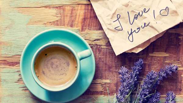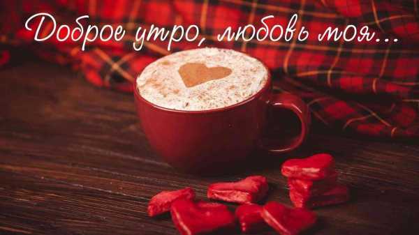 Ароматный кофе с сердечком ( Картинка с надписью «Доброе утро, любовь моя…»)