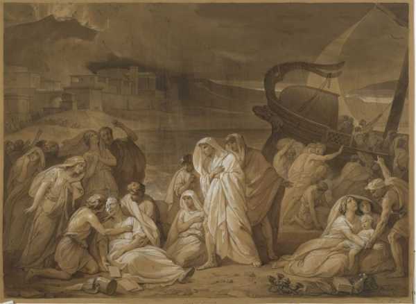 Басин П.В. Смерть Плиния. 1820-е. Эскиз неосуществленной картины. Бумага, сепия, белила, кисть, тушь, перо, графитный карандаш. Из собрания Третьяковской галереи.