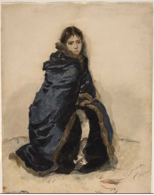 Суриков В.И. . Старшая дочь Меншикова. Этюд для картины «Меншиков в Березове» (1883, ГТГ). Бумага, акварель. Из собрания Третьяковской галереи.