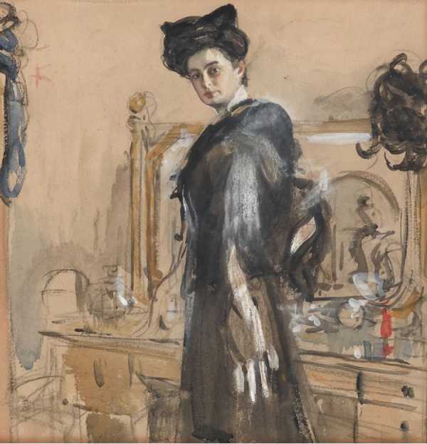 Серов В.А. Портрет Г.Л. Гиршман. 1906. Эскиз живописного портрета 1907 года, находящегося в Третьяковской галерее. Бумага на картоне, акварель, белила. Из собрания Третьяковской галереи.
