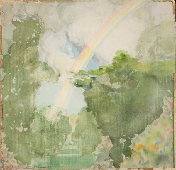 Борисов-Мусатов В.Э. Портрет дамы в голубом платье. Этюд для композиции «Летняя мелодия» (1904-1905, местонахождение неизвестно). Бумага, акварель, гуашь. Из собрания Третьяковской галереи.