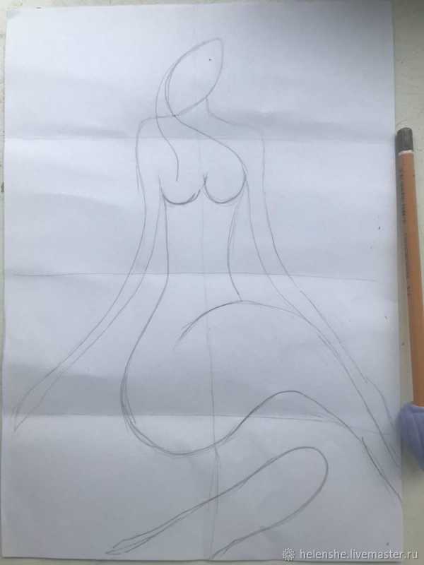 Итак, начинаем с того, что берем плотный лист бумаги и срисовываем изображение (в данном мастер классе это девушка). Для того, чтобы рисунок был правильно перенесен, воспользуйтесь линейкой или глазомером 🙂 Это значит, что вам нужно измерить изображение и отметить середину листа.