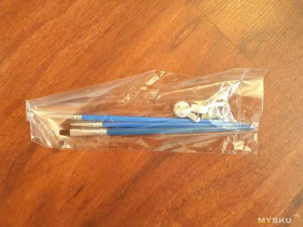 В-третьих, это кисточки для рисования (их три — различной толщины) и набор для крепления картины на стену (но крючки подойдут разве что на деревянные, фанерные или гипсокартонные стены).