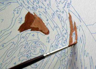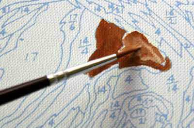 Нужно просто тщательно и аккуратно закрашивать области на холсте краской соответствующего цвета (номера).