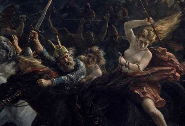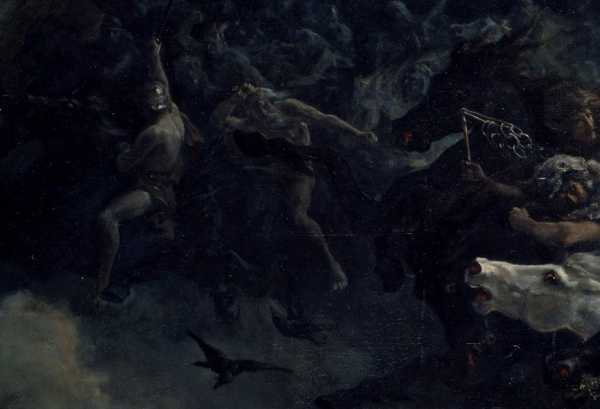 Наиболее известная картина художника «Дикая охота» изображает скандинавский миф. Группа призрачных всадников-охотников со сворой собак. Происхождение легенд о ней несет норвежские мифологические корни. Согласно скандинавской легенде, бог Один со своей свитой носится по земле, собирая души людей. Если кто-либо встретится с ними, то попадет в другую страну, а если заговорит, то погибнет.