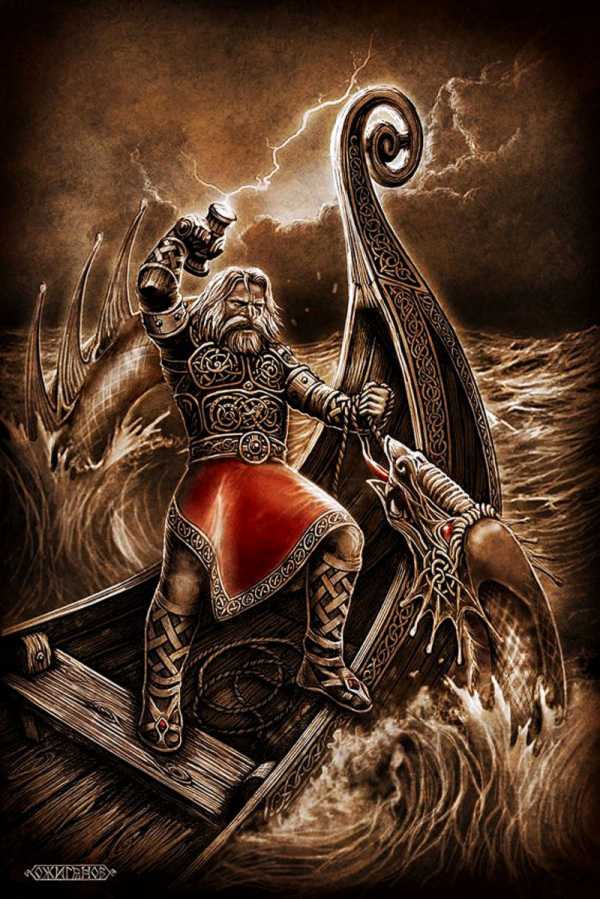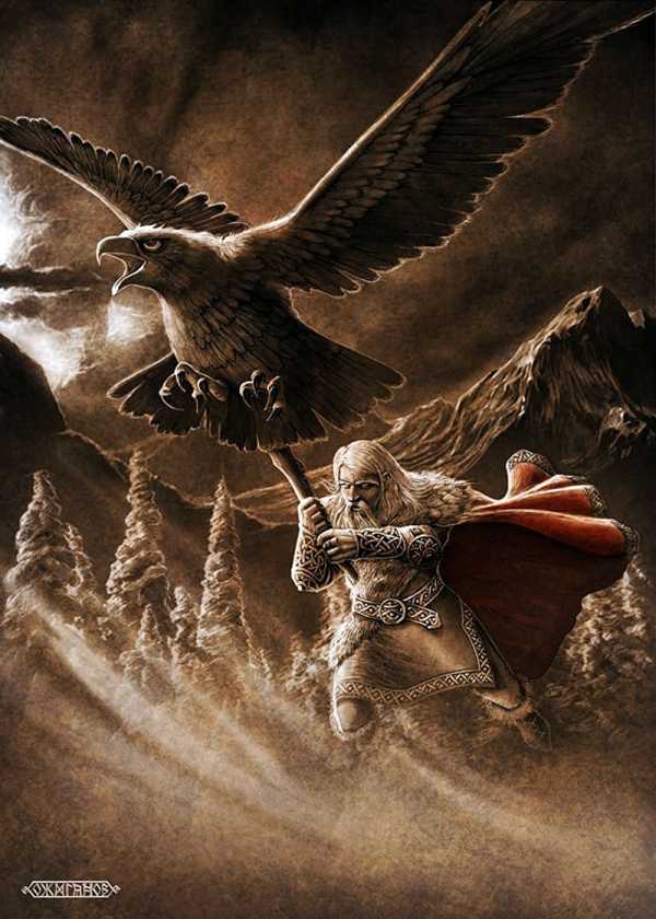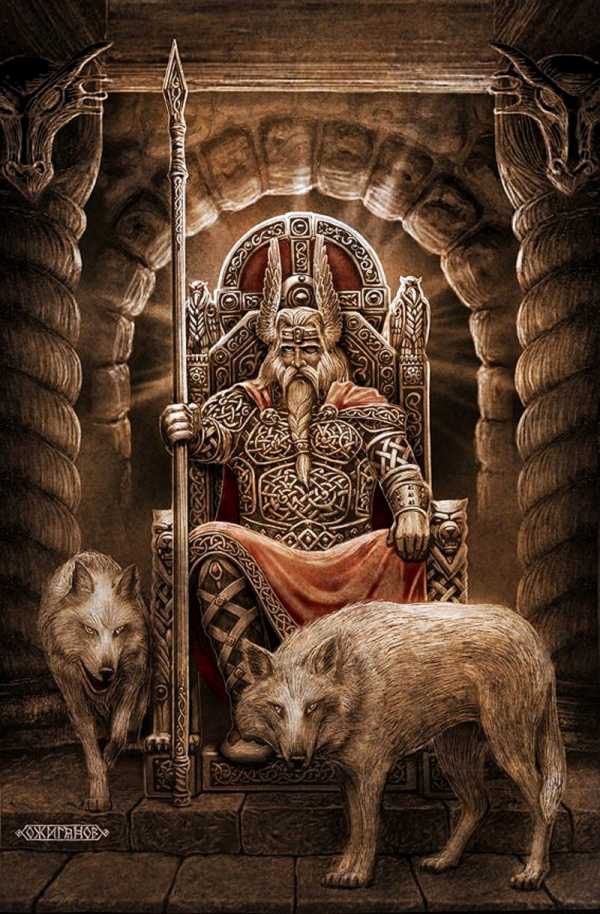 В соответствии с эсхатологическими мифами викингов, в день рагнарёка Один будет убит чудовищным волком Фенриром.