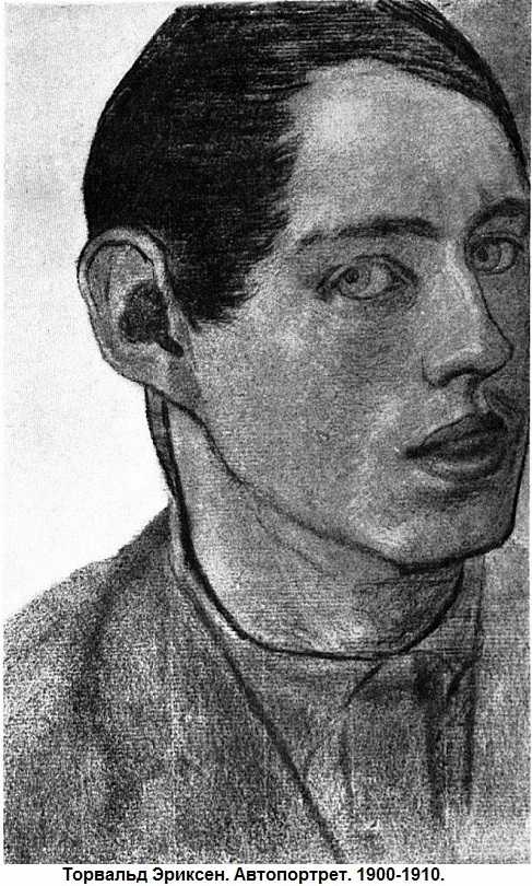 В 1904 — 1909 годах молодой художник живет в Копенгагене, получает там государственную стипендию и едет в Париж, где изучает современные тенденции во французском искусстве, подпадая под влияние не только импрессионистов, но уже и постимпрессионистов. Это очень хорошо видно в сравнении двух портретов. Написанный в спокойной коричневато-серой гамме портрет Кнута Гамсуна