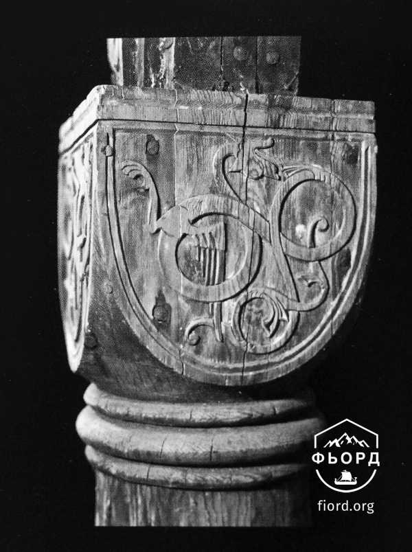 Столб из церкви Урнес, Норвегия. Смесь Романского стиля и мотивов стиля УрнесИсточники: Искусство Викингов (Джеймс Грэхем-Кэмпбелл), Викинги (Хольгер Арбман), Шведский национальный музей.