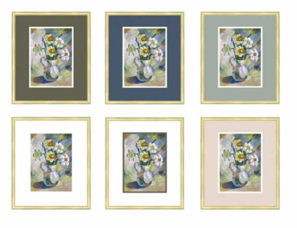 Имея богатую палитру цветов и оттенков, паспарту помогает создать цветовую гармонию между картиной и рамой.