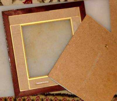 В этом случае просто вставьте в рамку лист плотной белой бумаги, а потом аккуратно по центру разместите ваше изображение (можно его немного закрепить сухим карандашным клеем).