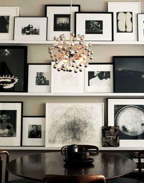 Если вы планируете повесить в одном месте целую группу фотографий или картин, не стоит делать слишком широкий багет. Узкая рама без особенных украшений здесь будет как нельзя кстати.
