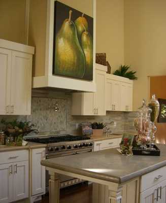 Традиционно принято оформлять кухню натюрмортом: сочные фрукты, свежий хлеб или богатый стола с дичью. Кто-то предпочитает картины с симпатичным букетом цветов.