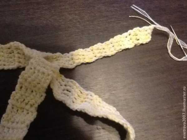 Теперь соединяем концы все 3-х лент двумя рядами ст.б.н. Получается такой держатель.