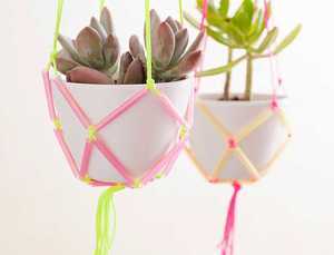 Подвесное кашпо из соломинок подойдет к интерьеру с инновационными нотками. Просто возьми пачку неоновых соломинок для коктейлей, крепкую нить и начни работу. Причем для этого тебе будет достаточно даже 15 минут!
