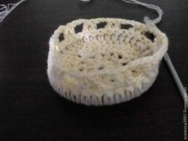 На основании края кашпо вяжем одну ленту 6 ст.с.н., высотой 25 рядов.