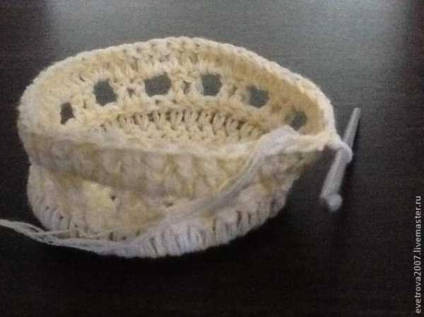 7. Следующий ряд вяжем так: * 2 ст.с.н., 3 в.п. над 1 п. предыдущего ряда*, повторить.