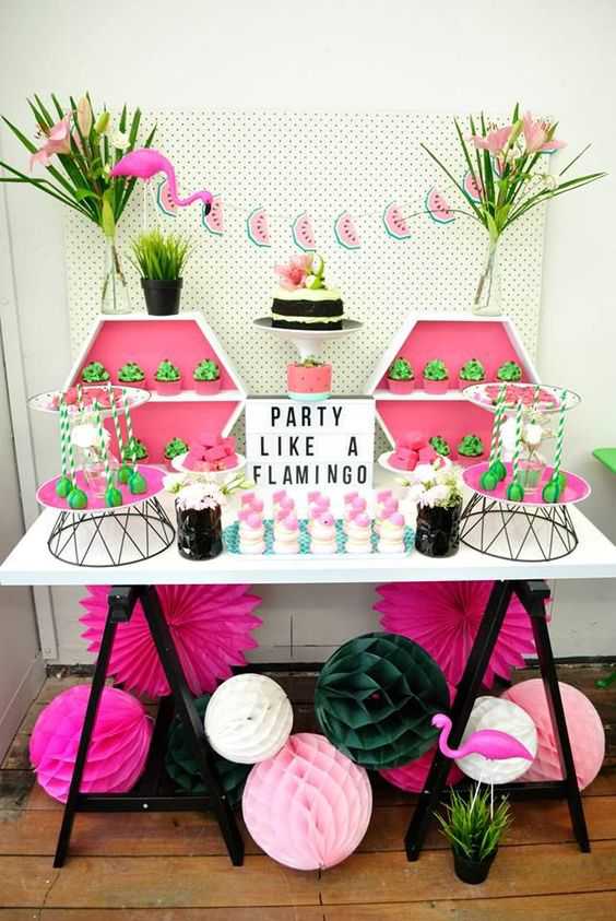 Не забудьте оформить помещение. Все детали должны составлять единую композицию определенной тематики. Используйте бумагу, воздушные шары, флажки или ленты. Также хорошо смотрятся фотографии, собранные в гирлянду или размещенные по всей стене.