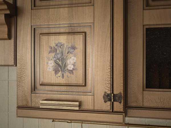Производители мебели при изготовлении кухни наносят на фасады специальный состав, который не только создает нужный эффект патины, но и придает мебели дополнительную защиту от влаги. Это значит, что такая мебель прослужит гораздо дольше.