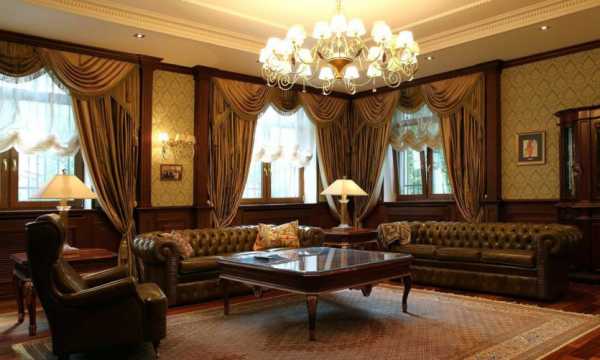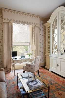 - Часто именно с таким ламбрекеном можно увидеть шторы в рабочем кабинете;