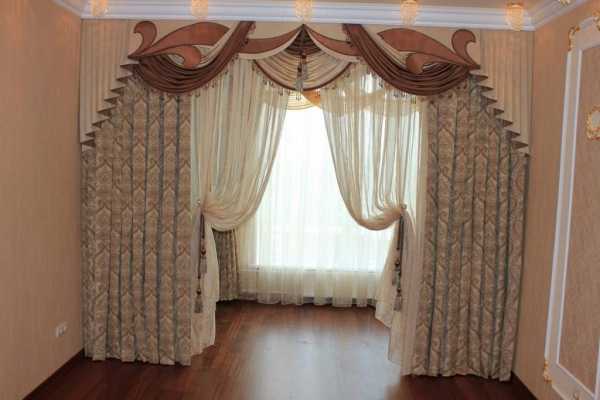 Дизайн штор ламбрекеном для зала: разнообразие вариаций