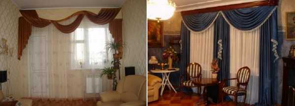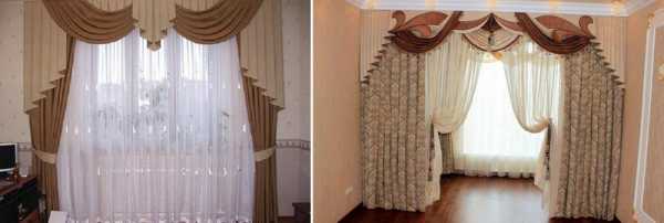 Более сложные по конструкции ламбрекены состоят из нескольких элементов, к наиболее часто встречающимся их видам относятся:
