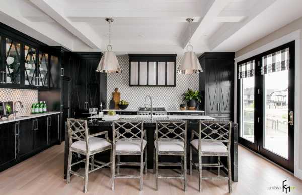 Но при этом стиль не лишен эклектизма и предполагает внедрение предметов, цветовых решений или отдельных элементов из других стилистик. Именно такой интеграции в классический стиль дизайна кухонного пространства посвящена следующая подборка образов современных кухонь.