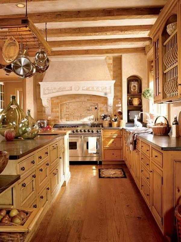 Идеальным центром симметрии будет плита, оформленная «под старину». Она же создаст то самое главное чувство домашней обстановки.