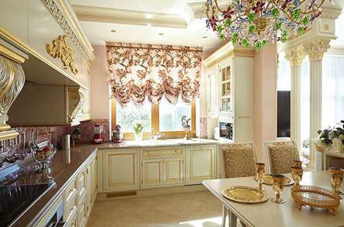 Типичные кухни, отображающие эпоху классики, оформлены мебелью из массива, натуральным текстилем, дорогими светильниками и в некоторых случаях позолоченными аксессуарами.