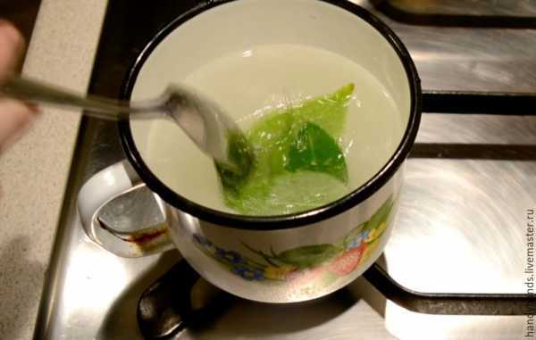 Первый способ заключается в кипячении листьев в содовой воде. Берем небольшую кастрюльку с водой и добавляем в нее довольно большое количество соды. Затем закидываем листья. После этого накрываем крышкой, чтобы сода не разлетелась по всей кухне.