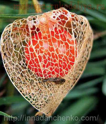 А еще таким способом прекрасно получается скелетировать физалис. Это такие яркие оранжевые фонарики на веточке, их очень любят использовать флористы для составления букетов из сухих цветов.Физалис