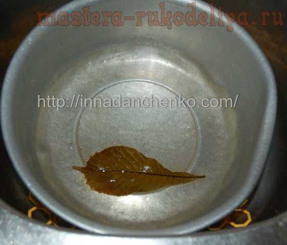 Можно еще такие листья дополнительно побить щеткой. А можно оскелетить их путем вываривания с «Кротом» и потом отбелить – получится вообще как тончайшее белое кружево – очень красиво.