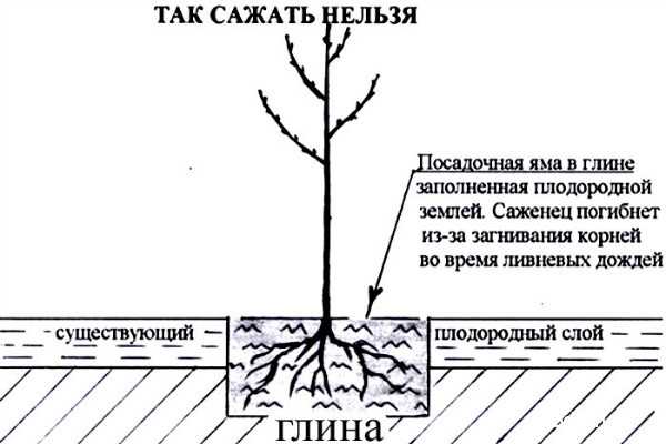 Самая распространенная ошибка — посадка в свежую яму. Собственно говоря, не в самой яме дело. Пока земля не просядет, очень сложно правильно заглубить корневую шейку саженца. Известно, что что ее нельзя ни заглублять, ни оголять — развиваться дерево нормально не сможет в обоих случаях.