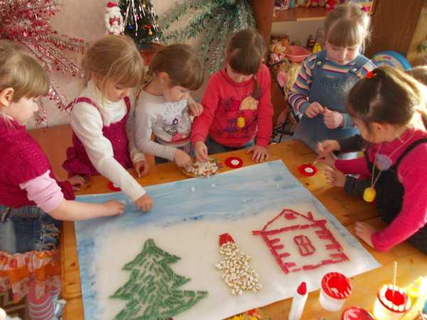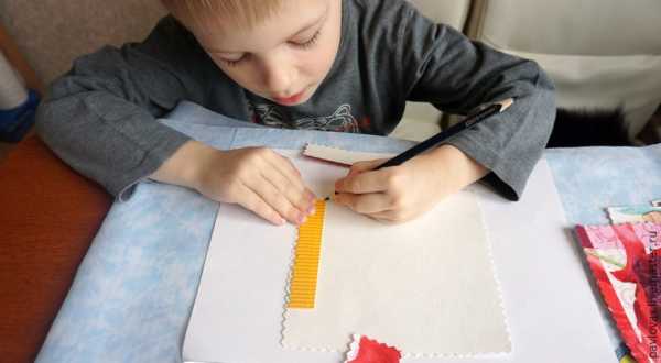 Если ваш ребенок затрудняется начать делать коллаж, предложите ему обратить внимание на землю. Спросите, что там будет – трава, снег, может быть, дорога. Помогите изобразить это своими руками при помощи самых разных средств – ниток, ваты, полосок бумаги. Если это поможет, то посадите рядом его любимую куклу, пусть он почувствует комфортность ситуации.